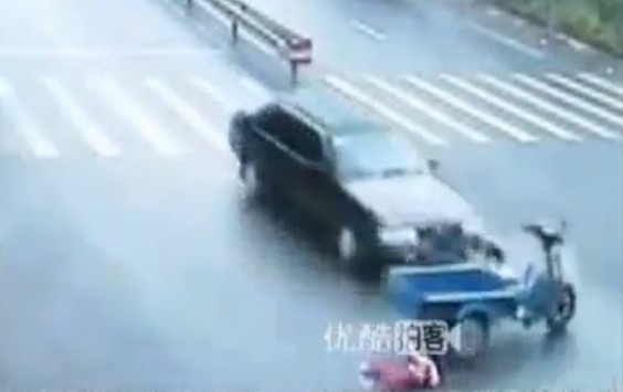 Η μικρή σώθηκε αφού έπεσε απο τη μοτοσικλέτα την τελευταία στιγμή και το αυτοκίνητο πέρασε ακριβώς δίπλα της ...