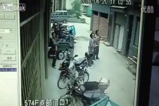 Περαστικοί στον δρόμο Taoyuan της κινεζικής πόλης, Ninghai, είδαν ένα κοριτσάκι να φωνάζει για βοήθεια και να κρέμεται από το μπαλκόνι στον τέταρτο όροφο πολυκατοικίας.